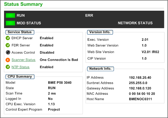 This field contains network and hardware address information and connectivity that corresponds to the Ethernet communications module.