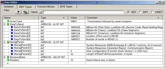 Expand the ReceivedData variable to display its word array, where you can view the CIP response contained in the ReceivedData variable:
