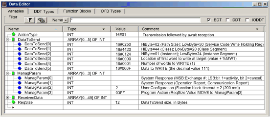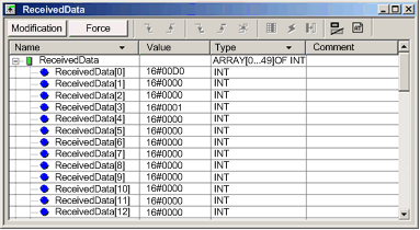 Expand the ReceivedData variable to display its word array, where you can view the CIP response contained in the ReceivedData variable: