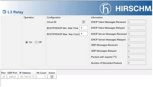 MSP30 DHCP relay agent configuration: