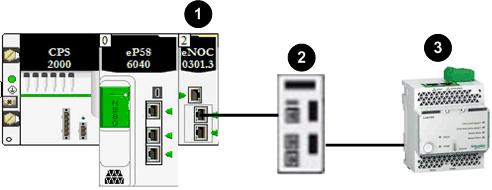 The gateway IP address of the BMENOC03•1 module is equal to the IP address of the router on the side of the BMENOC03•1 module.
