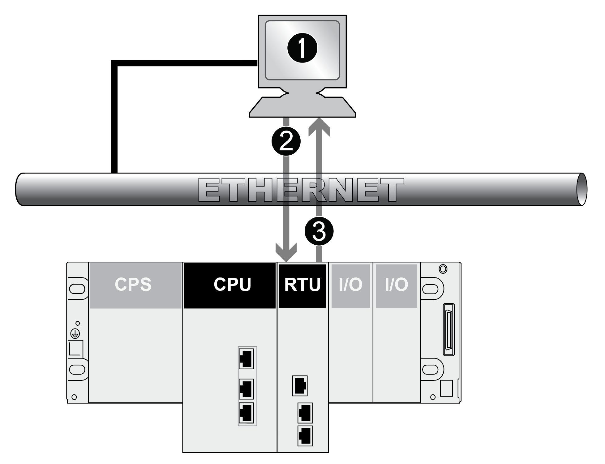 The SNMP manager transmits read or write requests (, , etc.) for objects defined in the MIB - II SNMP. The response is from the SNMP agent of the BMENOR2200H module.