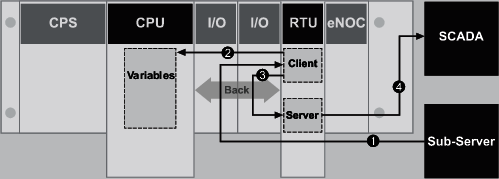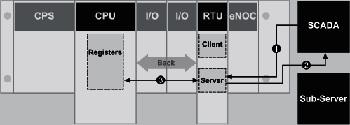 3 The point values are synchronized cyclically between the database of the server channel and CPU registers.