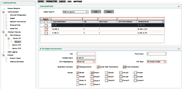 To facilitate communications with the BMENOR2200H module, create data points for the IEC60870-5-101/104 communication protocols in the DATA MAPPINGS tab in the DTM.
