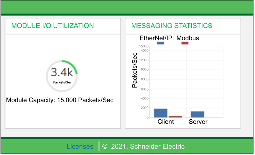 This graph shows the number of Modbus/TCP or EtherNet/IP messages per second for the client or server. |