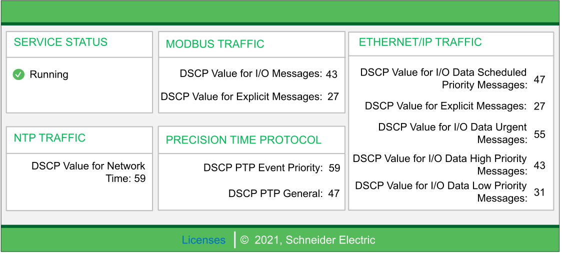 This page displays information about the QoS service that you configure in Control Expert.