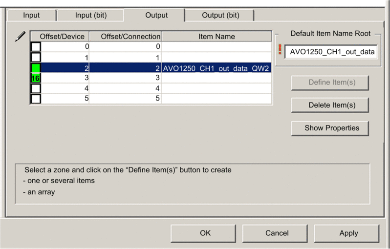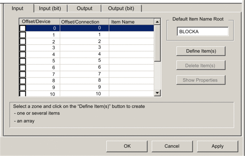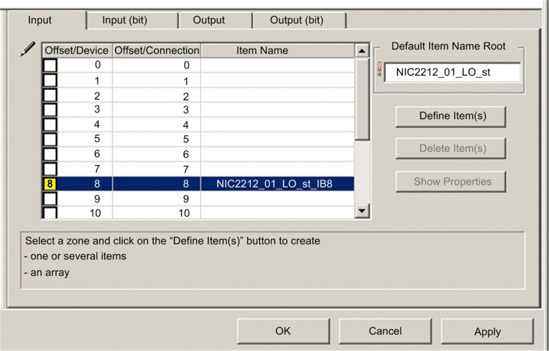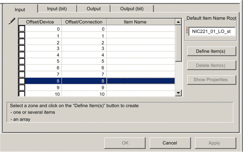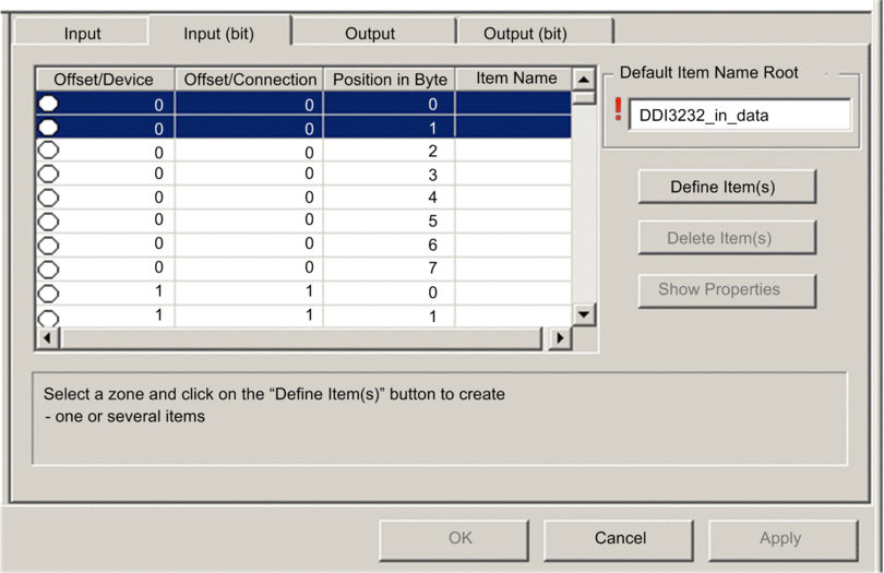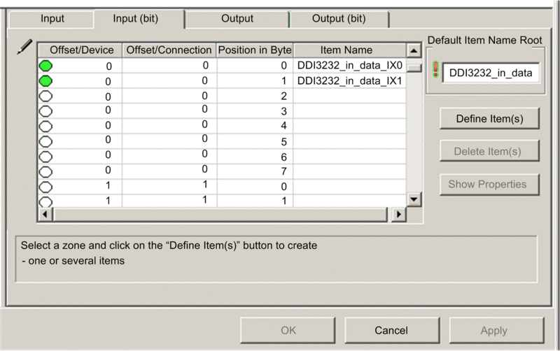 Accept the default , and click OK. Result: 2 discrete input items are created: ![]() |