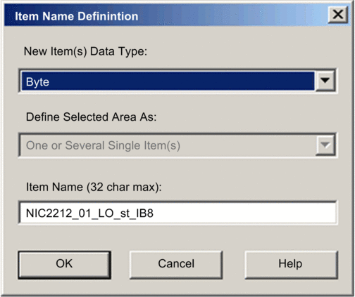 Select as the , then click OK. Result: A new byte item is created: ![]() |