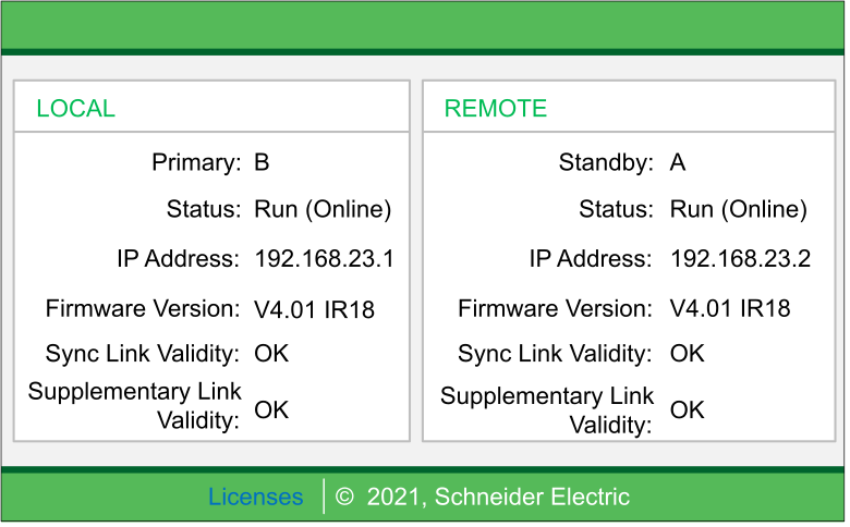 This area displays the state of Hot Standby settings for the local and remote CPUs: |