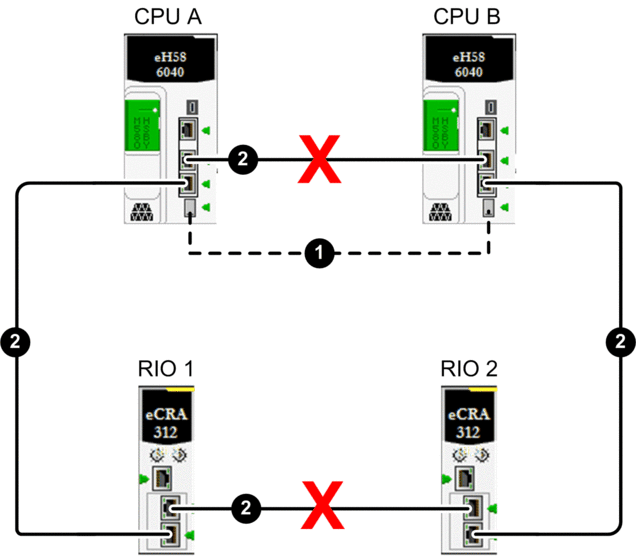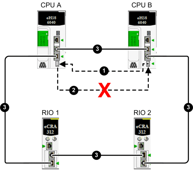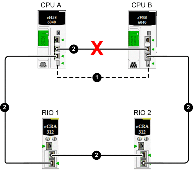 Ethernet RIO link between controller A and controller B
