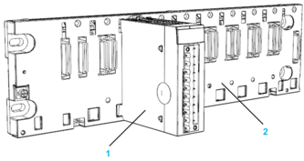 The diagram below shows a HART analog I/O module mounted on the rack.