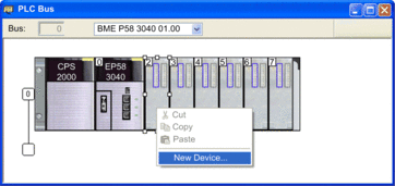 In the , right-click in a slot where you want to insert a HART analog I/O module. A context menu opens: ![]() NOTE: In this example, modules are added to the .