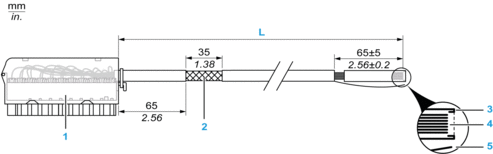 At the other end, free wire ends differentiated by color code.