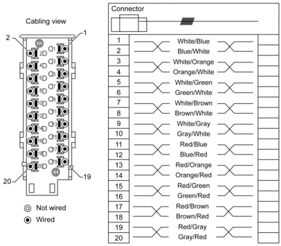 20-pin connector modules are connected to sensors, pre-actuators or terminals using a cable designed to enable direct wire to wire transition of the module’s inputs/outputs.
