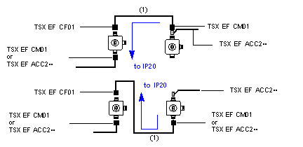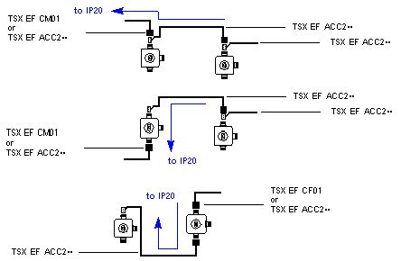 The following diagrams outline the connection principles for FipioIP67TXS EF ACC2•••/•••• cables.