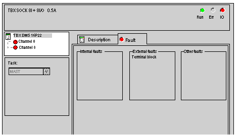 ![]() Note: In the event of major failure, absence of the module, certain configuration faults, or a major configuration fault, access to the module diagnostics screen is not possible. The following message then appears on the screen: The module is not present or different from the one configured in this position.