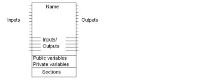 Structure of the function block: parameters, variables, code sections.