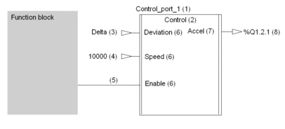 In FBD (Function Block Diagram) language, the user function blocks are represented in the same way as in Ladder language and are called graphically.