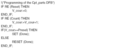 The internal program of the DFB type Cpt_parts is defined in Structured Text as follows.