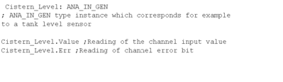 IODDT structure for an input\output channel of an analog module