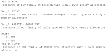 Direct addressing data instances are defined using types belonging to the Elementary Data Type (EDT) family.