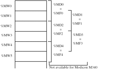 For M580 and M340, verify that double-type instance (double word) or floating instance (real) are located in an integer type %MW and that the index <i> of the %MW is even.