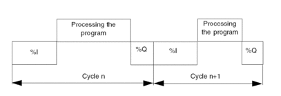 The following drawing shows the execution phases of the PLC cycle.