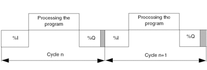 In this operating mode, input acquisition, the processing of the application program and the updating of outputs are all carried out periodically over a defined period of 1 to 255 ms.