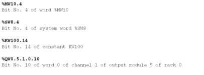 It is possible to extract one of the 16 bits of single words (%MW, %SW; %KW, %IW, %QW).
