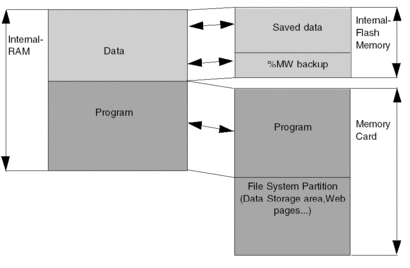 The values of the %MWi can be saved in the internal Flash memory using %SW96. These values will be restored at cold start, including application download, if the option Initialize of %MW on cold start is unchecked in the processor Configuration screen.