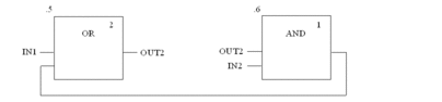 This type of logic must be resolved using feedback variables so that the signal flow can be determined.