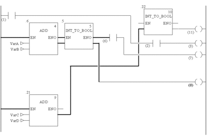 The execution sequence of networks which are only linked by the left power rail, is determined by the graphical sequence (from top to bottom) in which these are connected to the left power rail. This does not apply if the sequence is influenced by control elements.