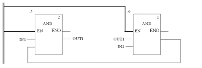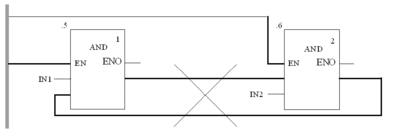 Creating loops using links alone is not permitted because it is not possible to clearly define the signal flow (the output of one FFB is the input of the next FFB, and the output of this one is the input of the first again).