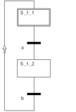 Standard signal flow in a sequence string is from top to bottom. To create a loop however, links can be made from below to a step above. This applies to links from transitions, parallel branches or alternative joints to a step. In these cases, the direction of the link is indicated with an arrow symbol:
