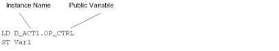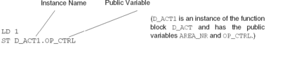 Public variables are read via the instance name of the function block and the names of the public variables.