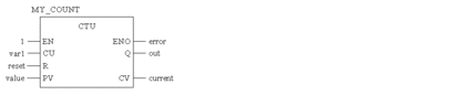 CAL MY_COUNT (EN:=1, CU:=var1, R:=reset, PV:=value,
