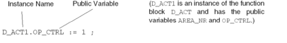 Public variables are read via the instance name of the function block and the names of the public variables.