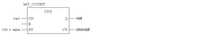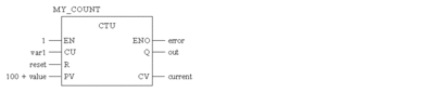 MY_COUNT (EN:=1, CU:=var1, R:=reset, PV:=100 + value,