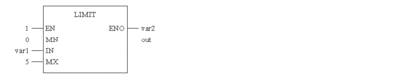 out:=LIMIT (EN:=1, MN:=0, IN:=var1, MX:=5, ENO=>var2) ;Calling the same function in FBD: