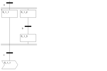 A jump into a parallel string does not activate all branches. Since the transition after the parallel joint is only evaluated if all steps which directly precede the transition are set, the parallel string can no longer be departed, the string is blocking.