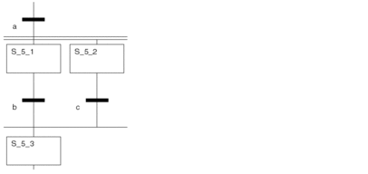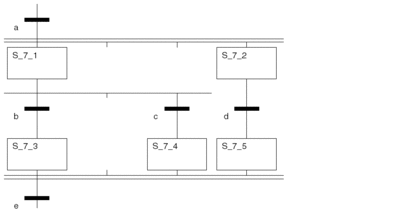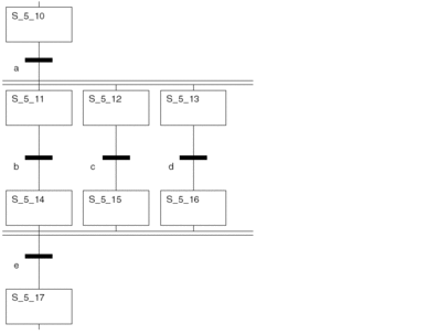 With parallel branches, switching a single transition leads to a parallel activation of more than one (maximum 32) steps (branches). This applies with Single-Token as well as with Multi-Token