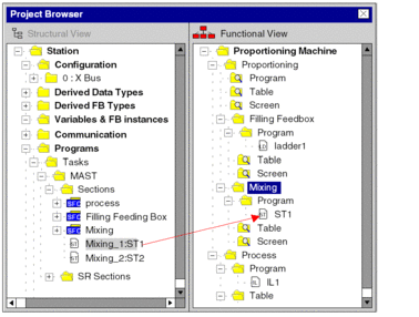 Insertion of Program Units, sections, animation tables etc. using drag and drop from the structural view