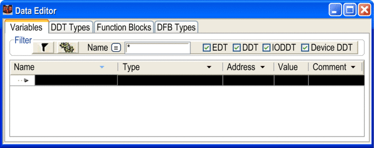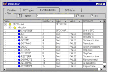 The tab is used for the instance declaration of elements and derived function blocks (EFBs/DFBs).