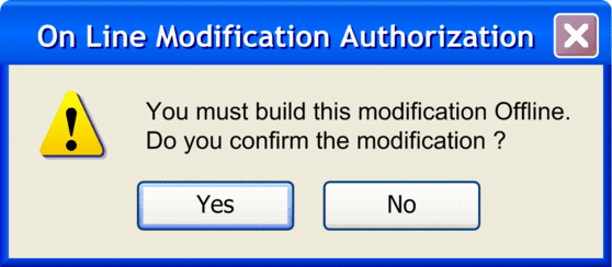 Whether the current FB can not be removed online, or a new FB can not be added online, the online type modification of this FB is not allowed. Indeed, some Elementary Function Blocks (EFB) like the Standard Function Blocks (SFB) do not allow to be added or removed online. As a result, changing the type of an EFB instance to a SFB instance is not possible, and conversely.