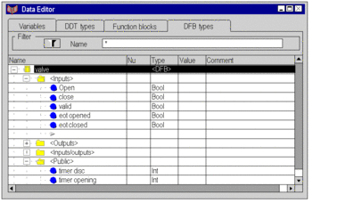 Instance declaration of elements and derived function blocks (EFBs/DFBs)